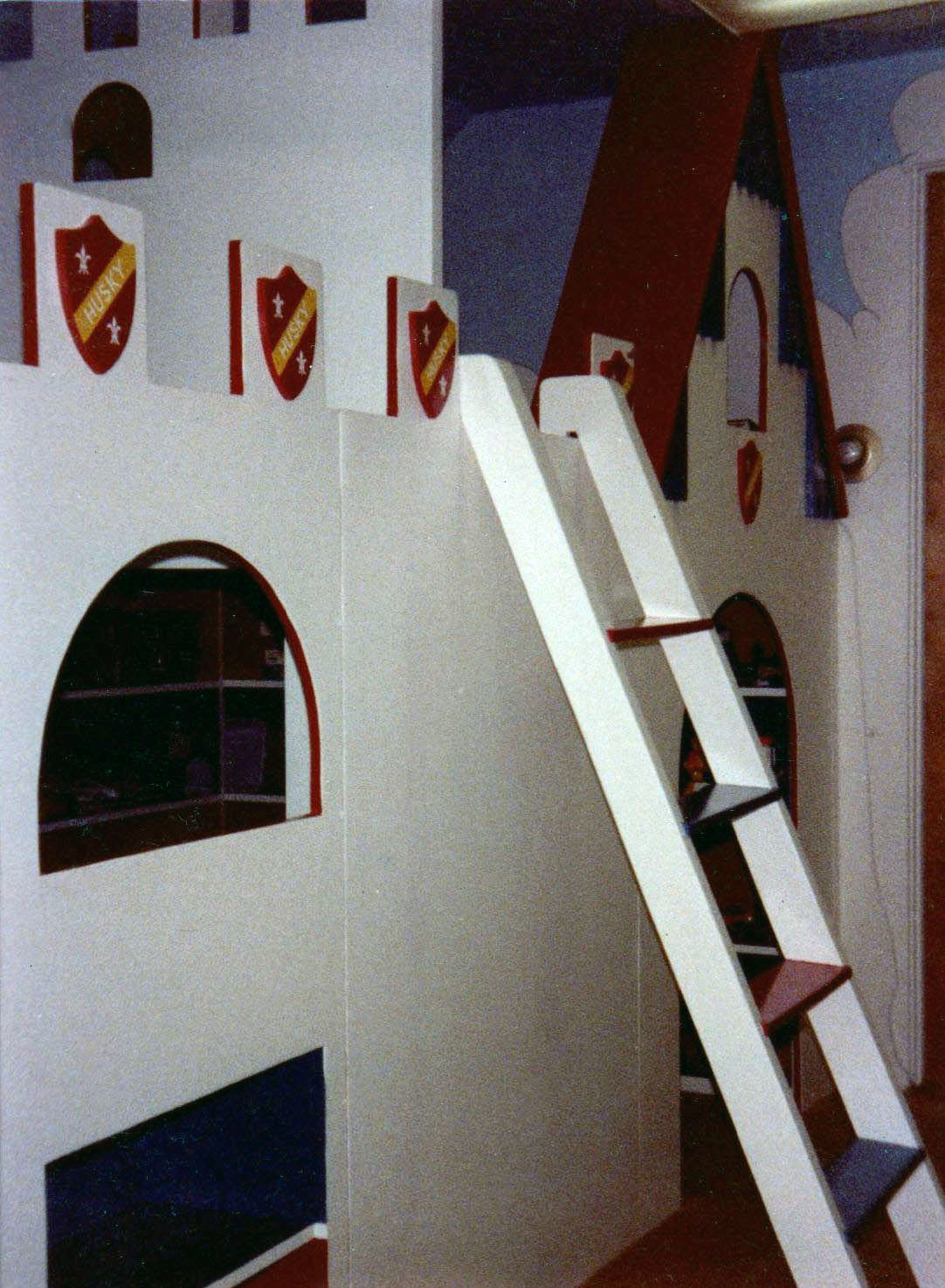 CARTOON FURNITURE SAMPLE CATALOGUE CHECK OUT MY ONLINE STORE HUSKY PALISADES CASTLE $ 6000 + ALL CASTLES ARE CUSTOM MADE AND MEASURED TO FIT SPACE IN ROOM DESIRED. CUSTOM COLORS AND DESIGNS TO MATCH YOUR REQUIREMENTS. CASTLES ARE STURDY AND REQUIRE ATTACHMENT TO ONE WALL FOR SAFETY. ( THEY ARE NOT FREESTANDING ) ALL ARE MADE FROM BIRCH CABINET GRADE PLYWOOD WITH FIR OR PINE SUPPORTS. |